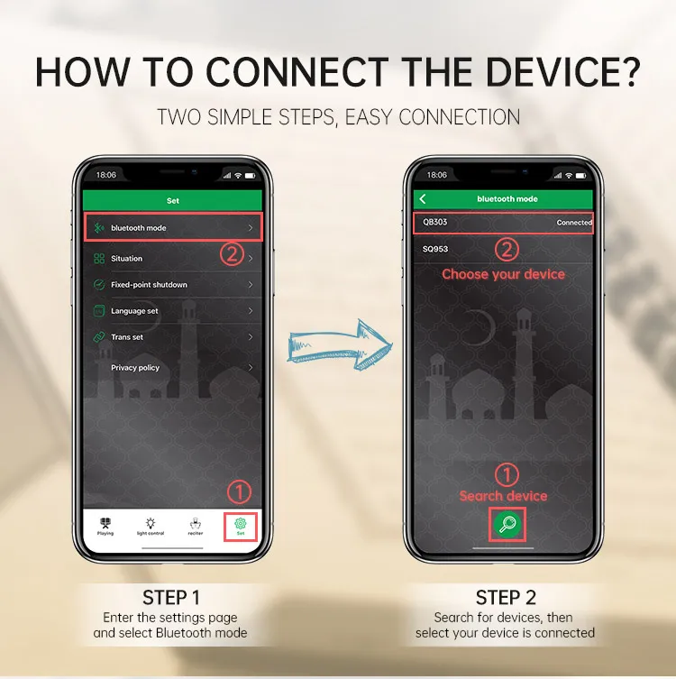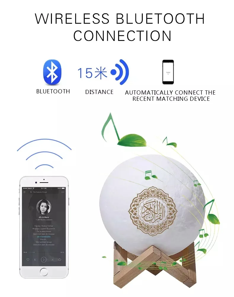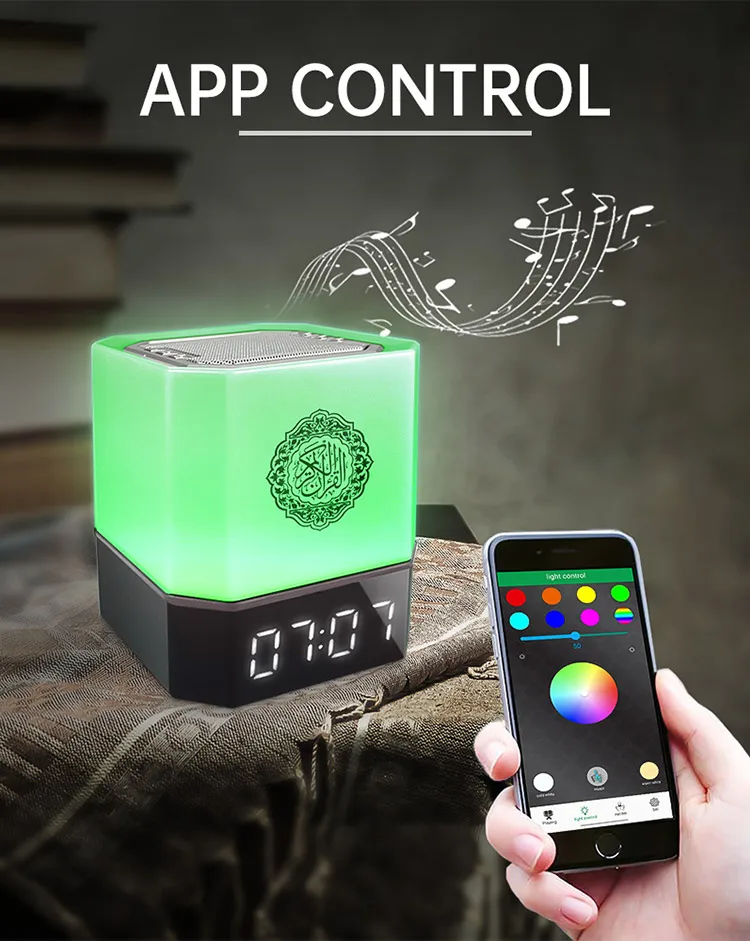 App & Remote Control: Seamlessly switch between Surahs, adjust volume, or change lighting colors directly from your smartphone.