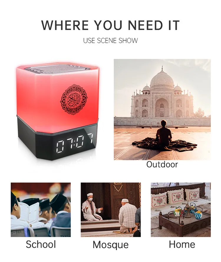 Bluetooth Speaker Wireless Remote LED Night Light Smart APP Control Digital AZAN Clock with Quran Recitation Translation