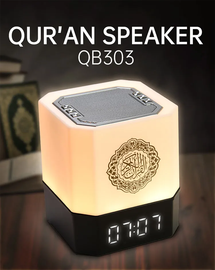 The Al-Noor Smart Quran Hub is an all-in-one spiritual companion for every Muslim household. This elegant device combines a high-quality Bluetooth speaker with a smart Azan clock and a soothing night light. Controlled easily via a dedicated Smart APP or remote, it brings the beauty of the Quran, translations, and prayer reminders into your living space with crystal-clear sound and atmospheric lighting.
