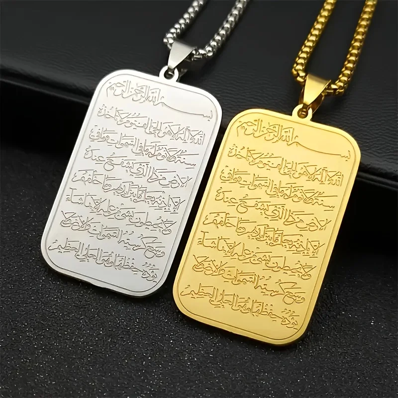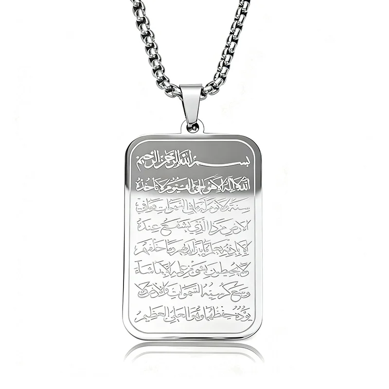 Islamic Ayatul Kursi Pendant Necklace Stainless Steel Arabic Calligraphy Amulet Necklaces For Men Quran Jewelry
