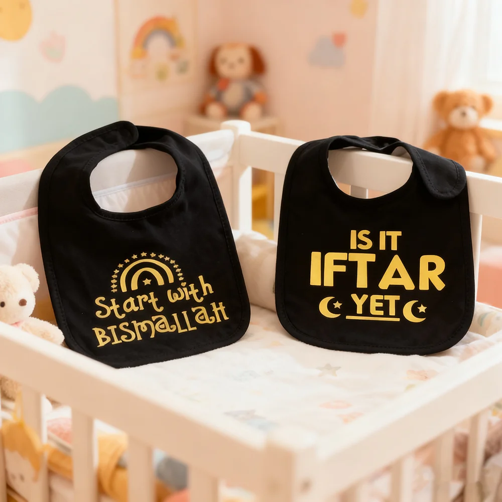 4.Practical Protective Bib – Designed to catch spills and food crumbs, keeping baby’s clothes clean during meals, Iftar gatherings or festive celebrations.