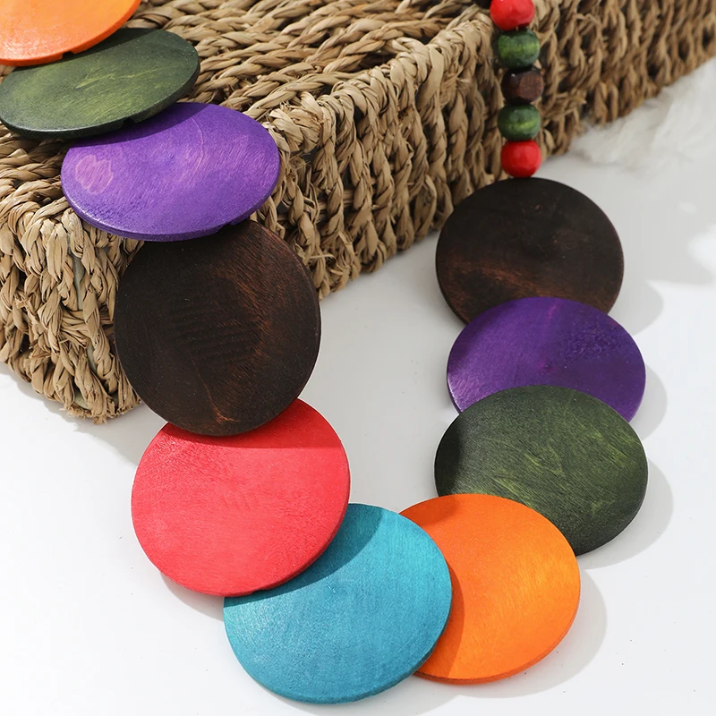 FTCY Bohemian Vintage Wood Necklace for Women Handmade Exaggerated Necklace Earring Jewelry Sets Women's Party Gifts