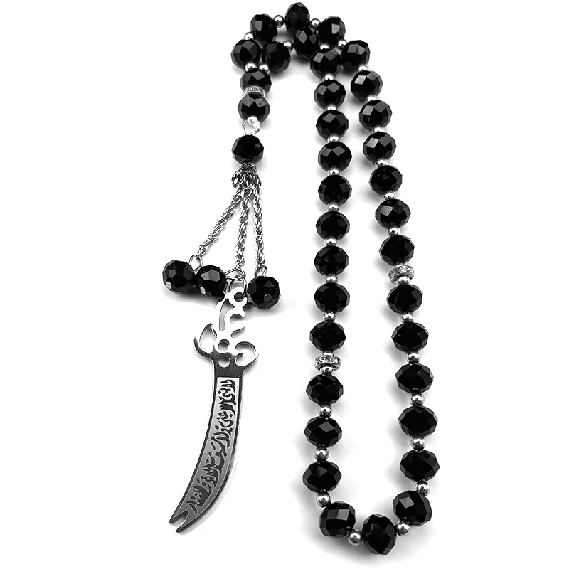 Ali Sword Quran Knife Car Pendant For Men Women Stainless Steel Gold Color Muslim Islamic Glass 33 Prayer Beads Jewelry Gifts