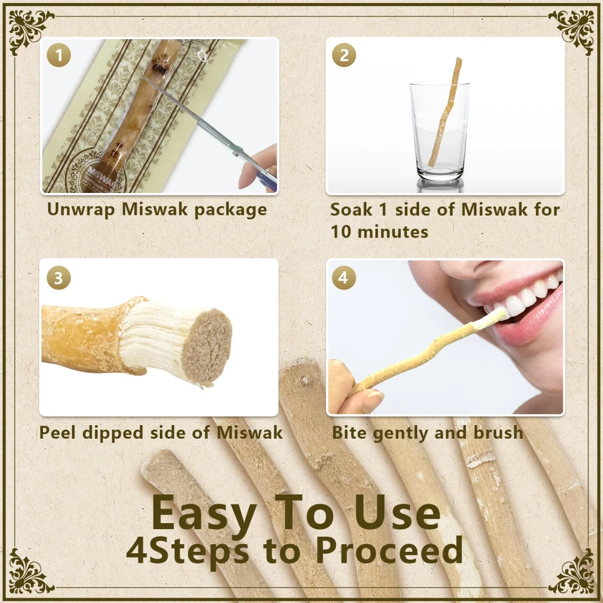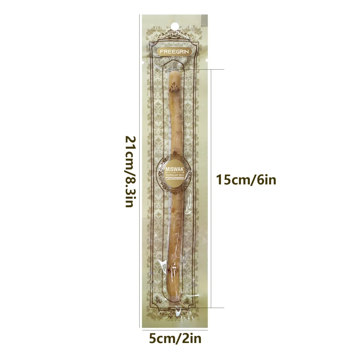 Rediscover traditional dental care with this single-unit, all-natural Miswak stick, suitable for men, women, and children. Sourced from pure natural wood, this traditional toothbrush effectively removes tough stains from coffee and smoking, promotes a brighter smile, and freshens breath. An excellent alternative for reducing tartar and maintaining oral hygiene naturally. Measuring approximately 6.3 inches.